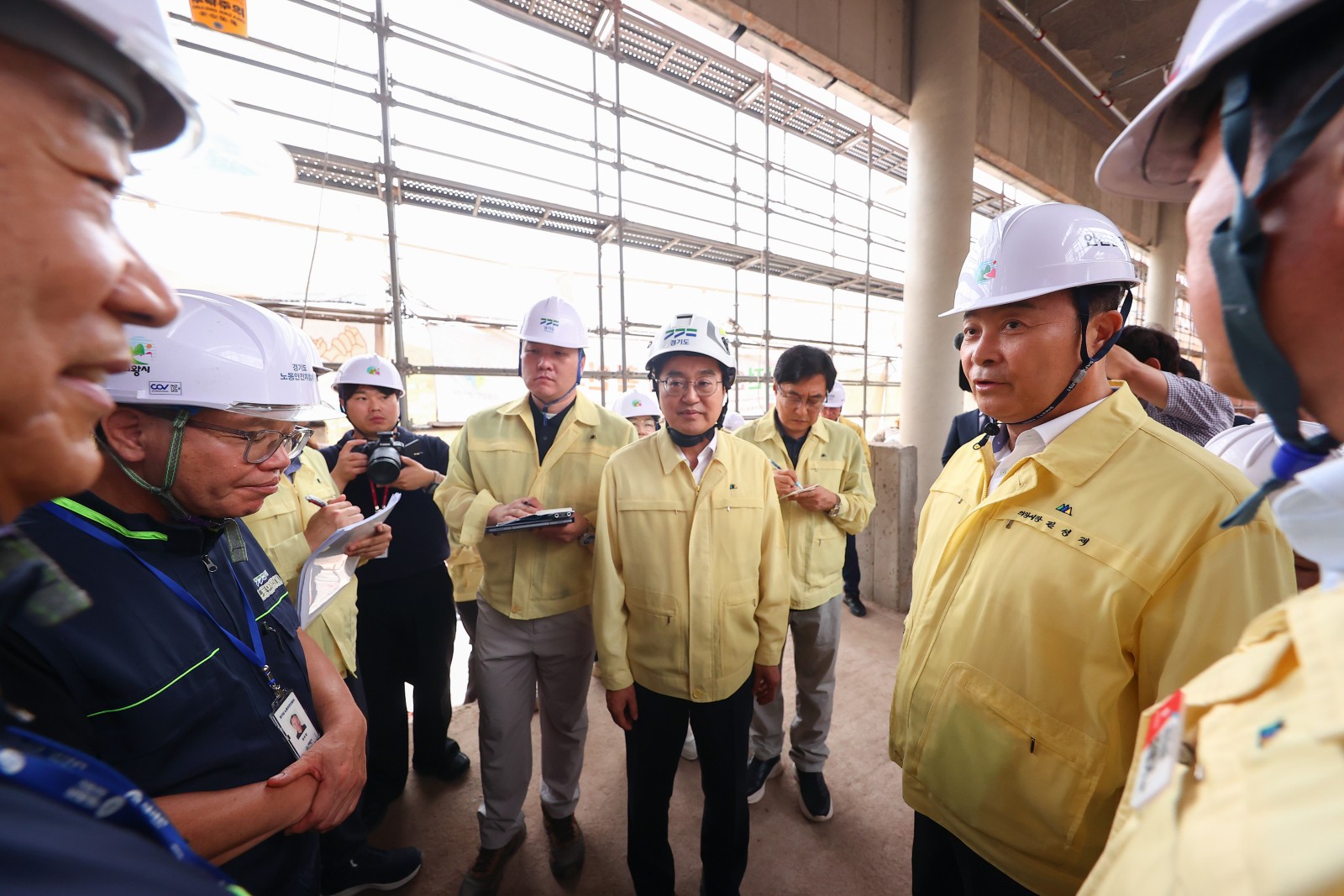 <8월14일(목) 오후2시30분, 김성제 의왕시장은 학의동에서 진행된 중소규모 건설공사장 사업 재해예방 현장 점검을 김동연 경기도지사와 함께 진행하고, 시 주요 현안들을 건의했다.>