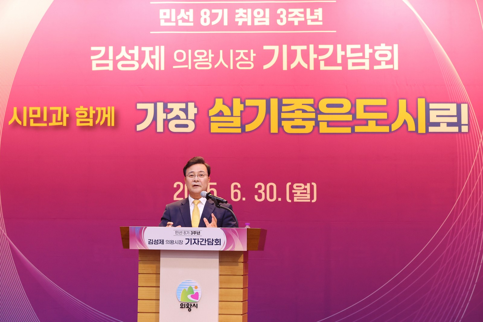 <6월30일(월) 오전10시, 김성제 의왕시장은 대회의실에서 진행된 민선8기 3주년 기자간담회에 참석해 시정브리핑 및 기자들과 질의응답을 진행했다.>