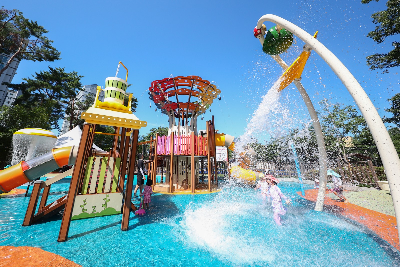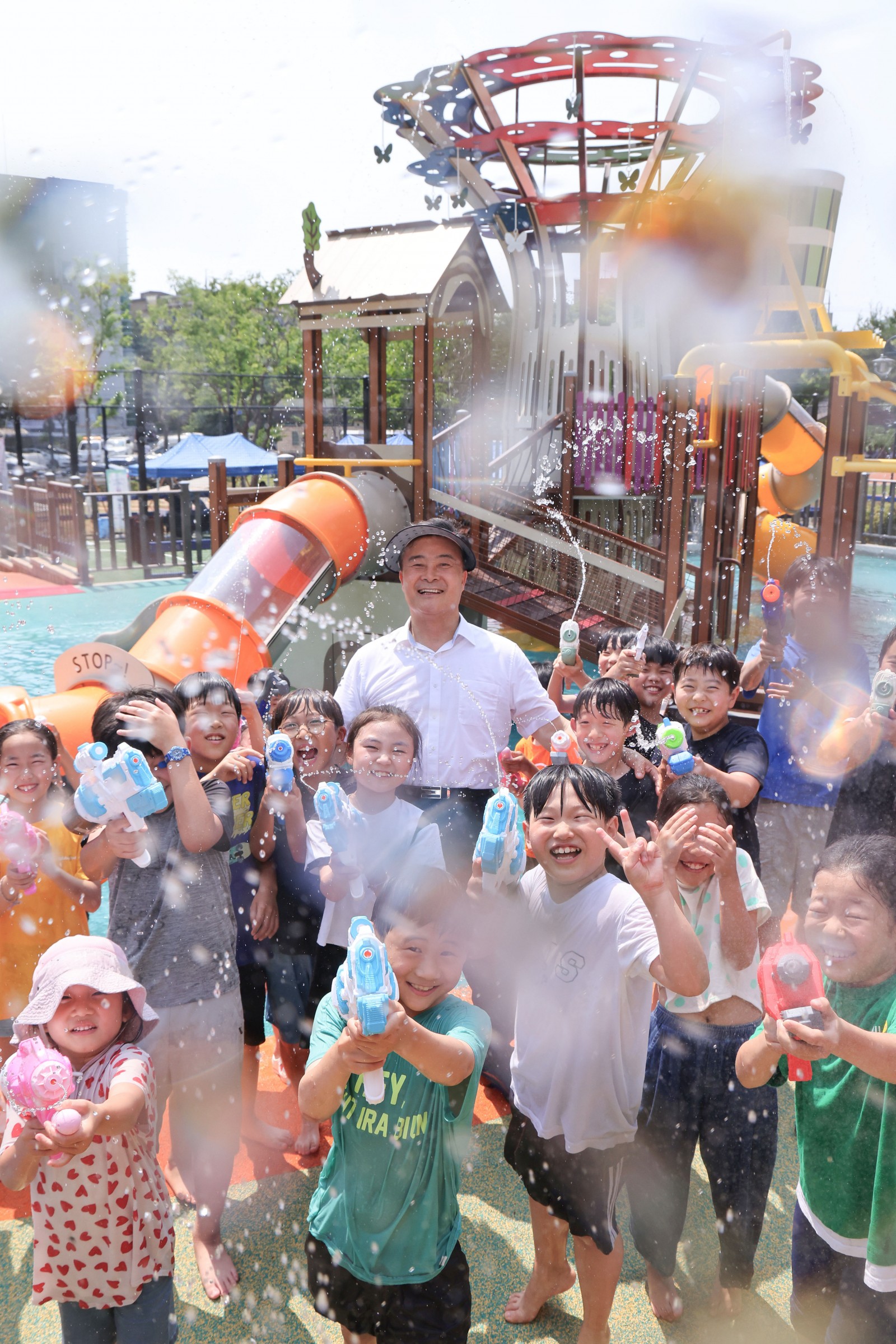<6월18일(수) 오후2시, 김성제 의왕시장은 청계동 가막들공원에서 열린 가막들공원 물놀이장개장식에 참석해 축사, 테이프 컷팅을 비롯해 어린이들과 물놀이를 함께했다.>