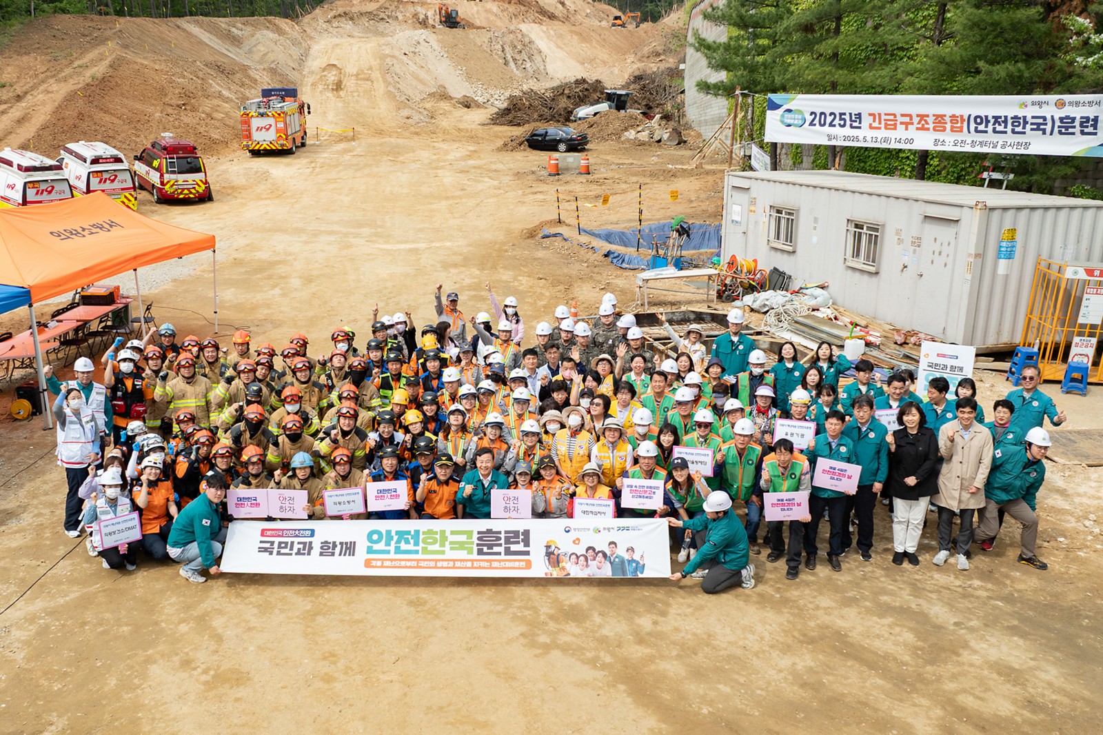 <5월13일(화) 오후13:30분, 김성제 의왕시장은 오전동 오전-청계 터널 공사장에서 열린 2025 의왕시 재난대응 안전훈련에 참가해 실행기반훈련 참관 및 강평을 진행했다.>